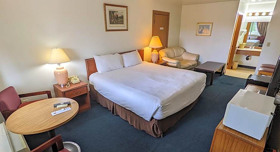Offering a cable TV with premium movie channels and a microwave, this air-conditioned room also features a seating area and a refrigerator.